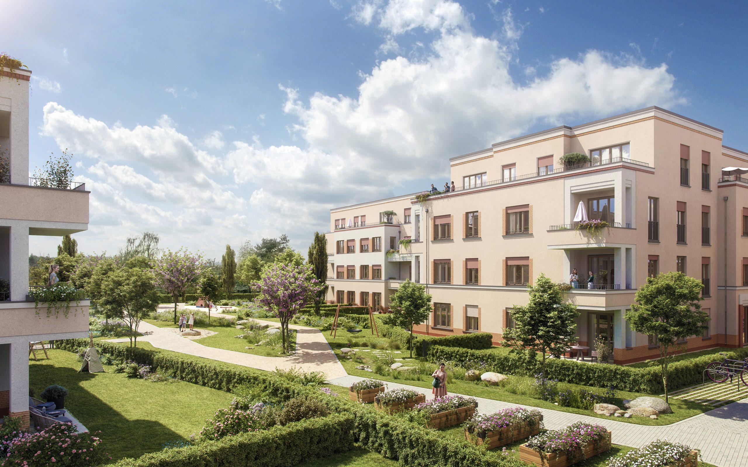 Bis voraussichtlich Dezember 2027 entstehen im Potsdamer Stadtteil Bornstedt insgesamt sieben freistehende Wohngebäude in überwiegend viergeschossiger Bauweise. Die architektonische Planung stammt von Hilmer Sattler Architekten Ahlers Albrecht und wird mit der BRAWO Real Estate als Projektentwickler realisiert. Das Projekt umfasst 67 Eigentumswohnungen, 53 Mietwohnungen, 6 Gewerbeeinheiten, 26 Tiefgaragenstellplätze, 52 Außenstellplätze sowie 248 Fahrradstellplätze. Die geplante Gesamtnutzfläche beträgt rund 8.237 m².