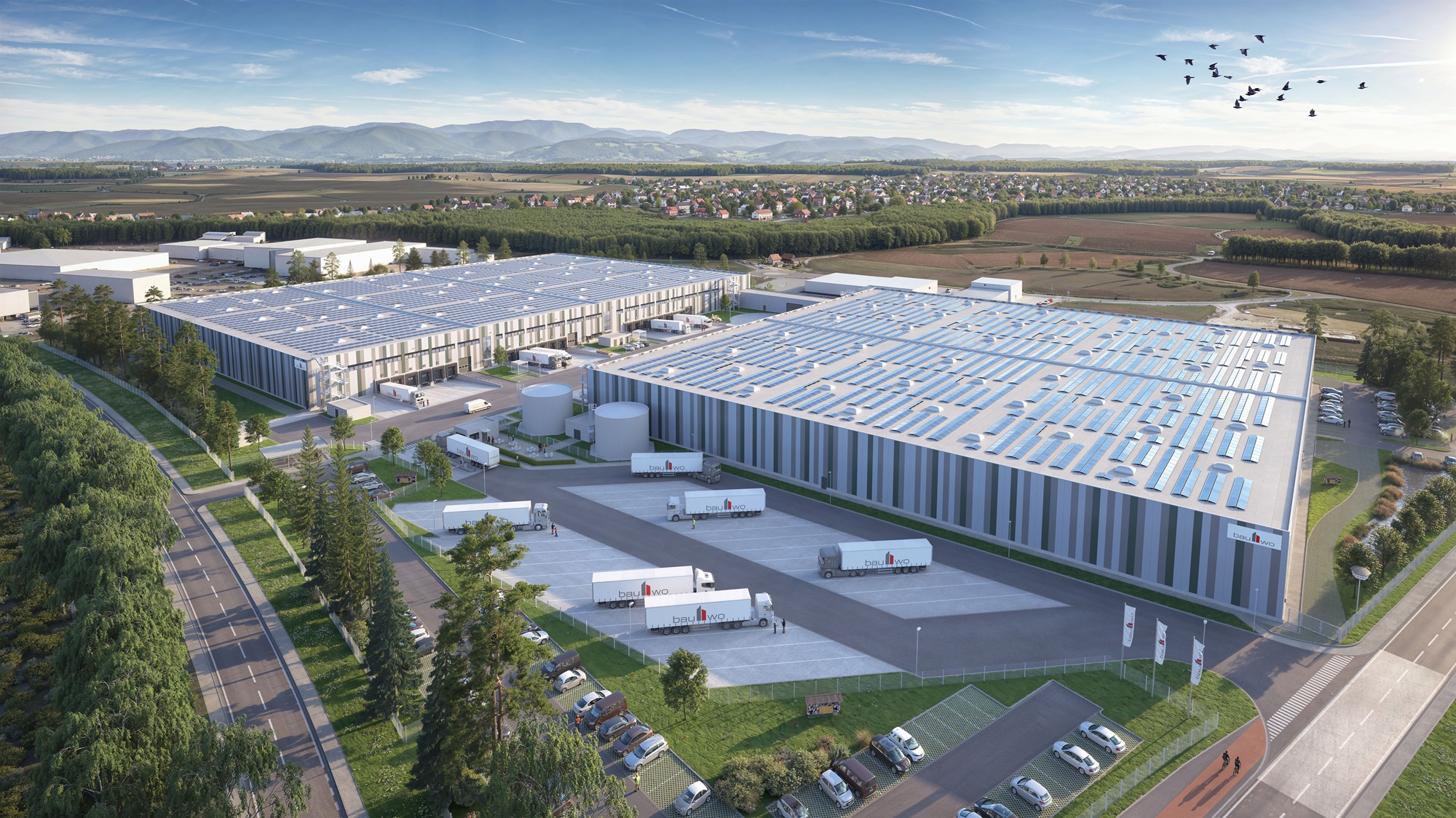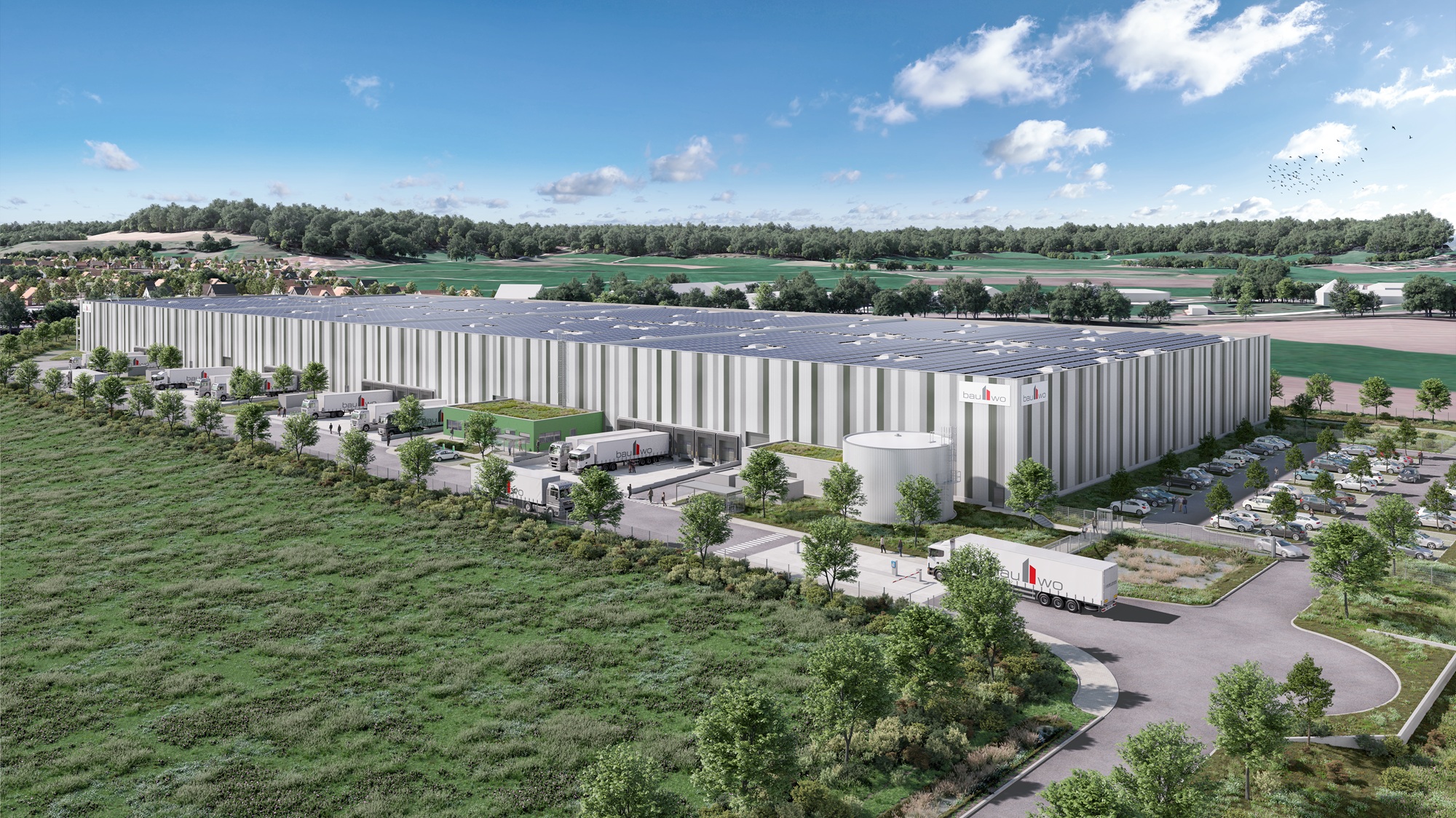 In Rheinau, unmittelbar an der Autobahn A5 und nahe der französischen Grenze, realisiert bauwo auf dem Gelände eines ehemaligen Industrieareals ein spekulativ entwickeltes Logistikprojekt. Aus dem Brownfield entsteht ein moderner Gewerbestandort mit rund 41.000 m² Hallenfläche, verteilt auf zwei über einen Tunnel verbundene Hallenschiffe. Die Fertigstellung ist für Ende Dezember 2026 geplant. Auch bei diesem Objekt wird eine DGNB-Gold-Zertifizierung angestrebt.